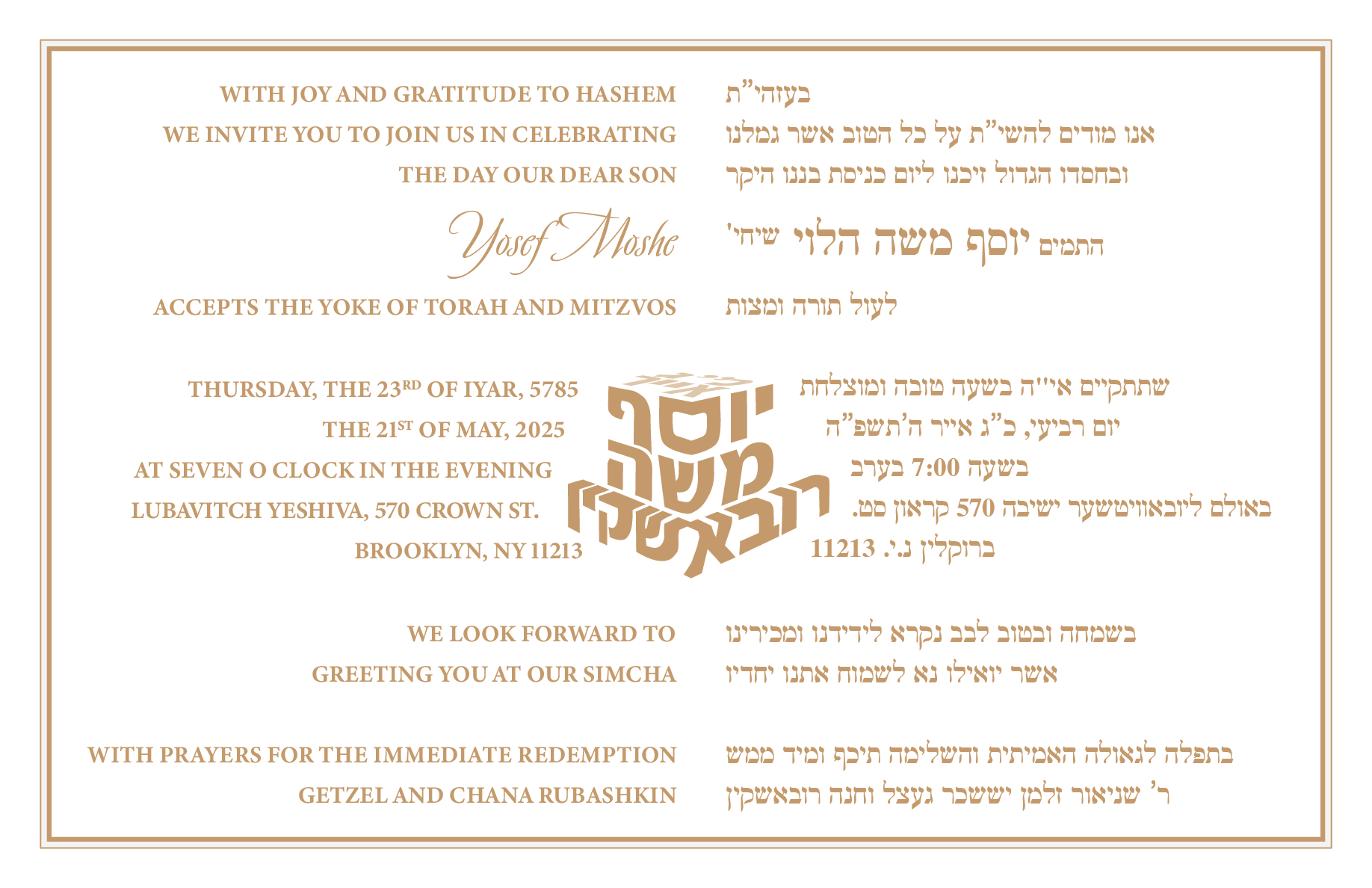 ובחסדו הגדול זיכנו ליום כניסת בננו היקר